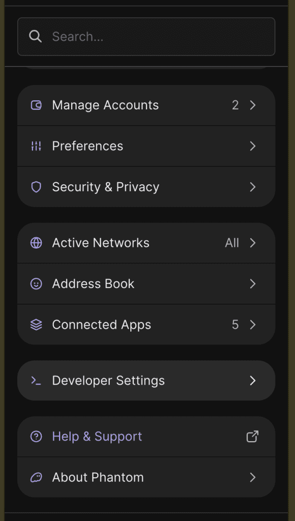 Step 1: Open Phantom and tap the Settings icon in the top left corner.