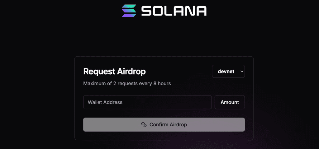 Visit the Solana Faucet, paste your wallet address, select Devnet, and request your airdrop. Users can typically claim up to 5 SOL per request on Devnet, with requests available twice every 8 hours.