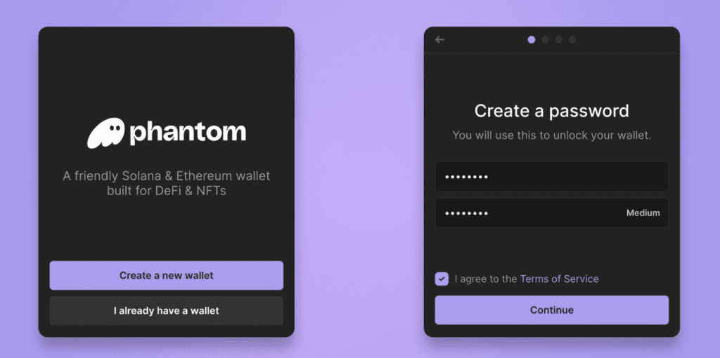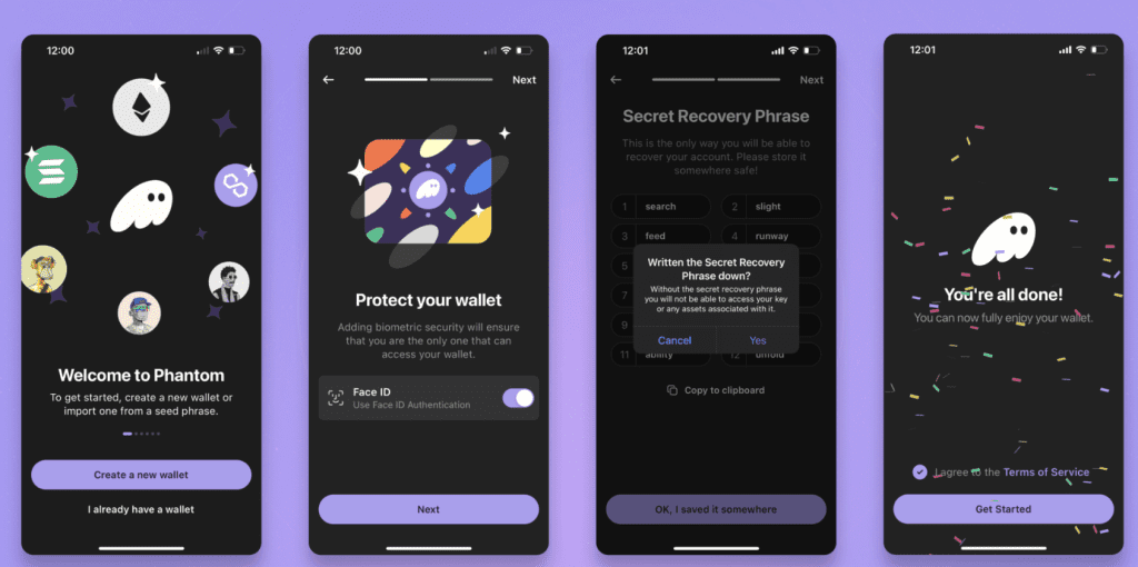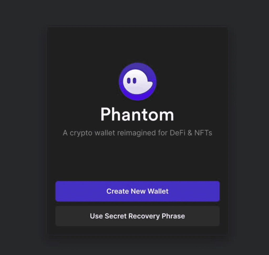 Once you’ve installed the Phantom app, open it up and select “Create New Wallet.” Here’s what happens next: