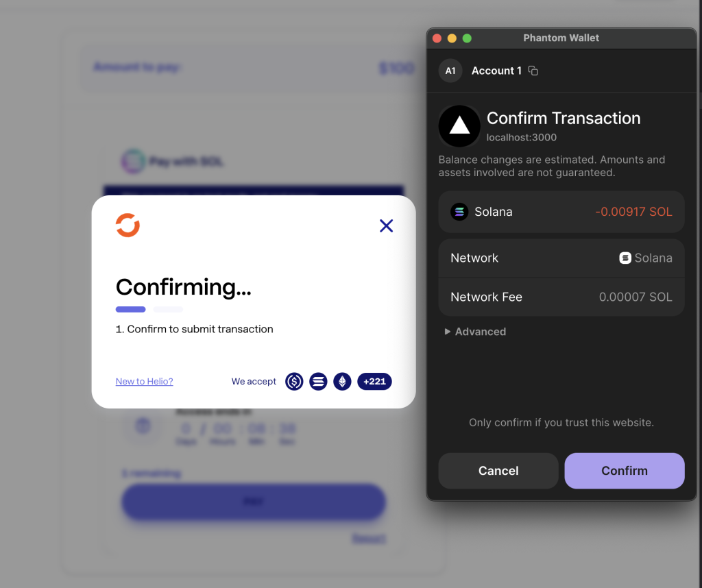 5. Once you select pay, you will have to confirm the transaction on your wallet.